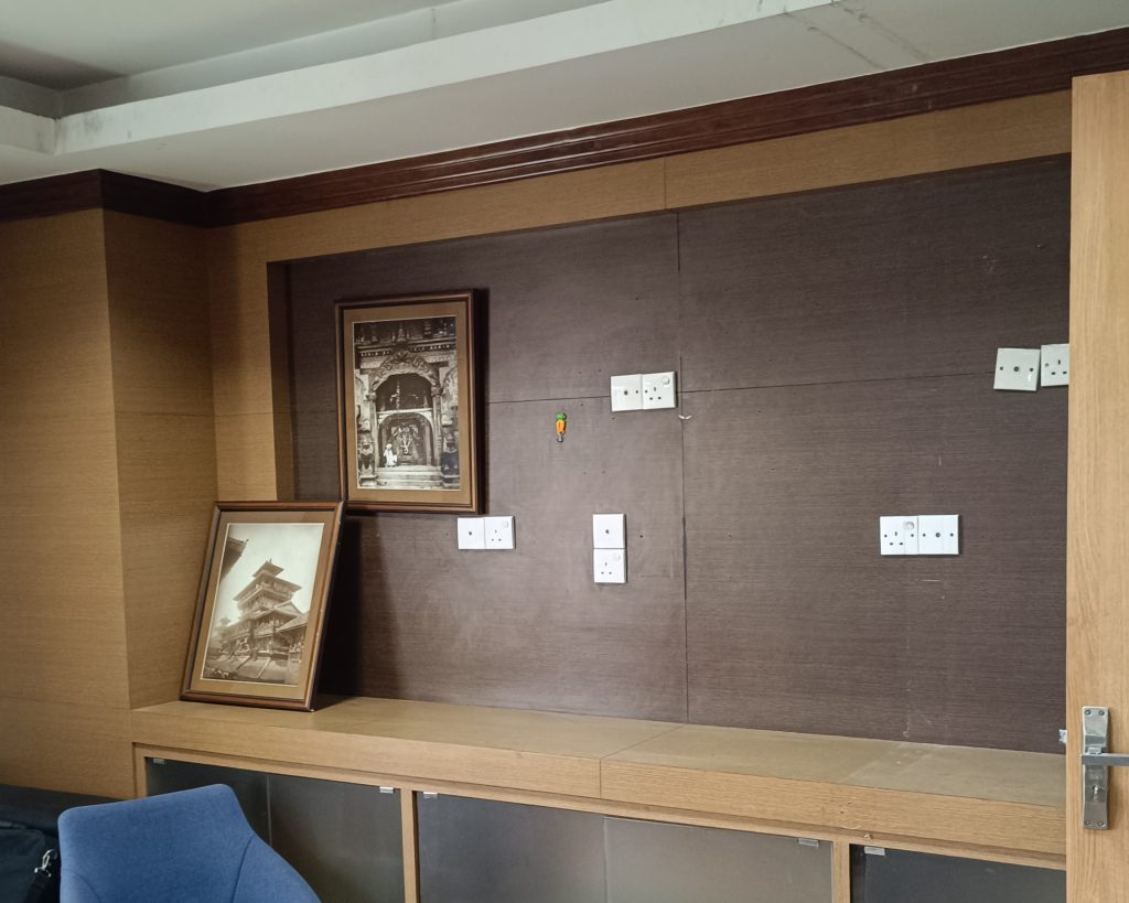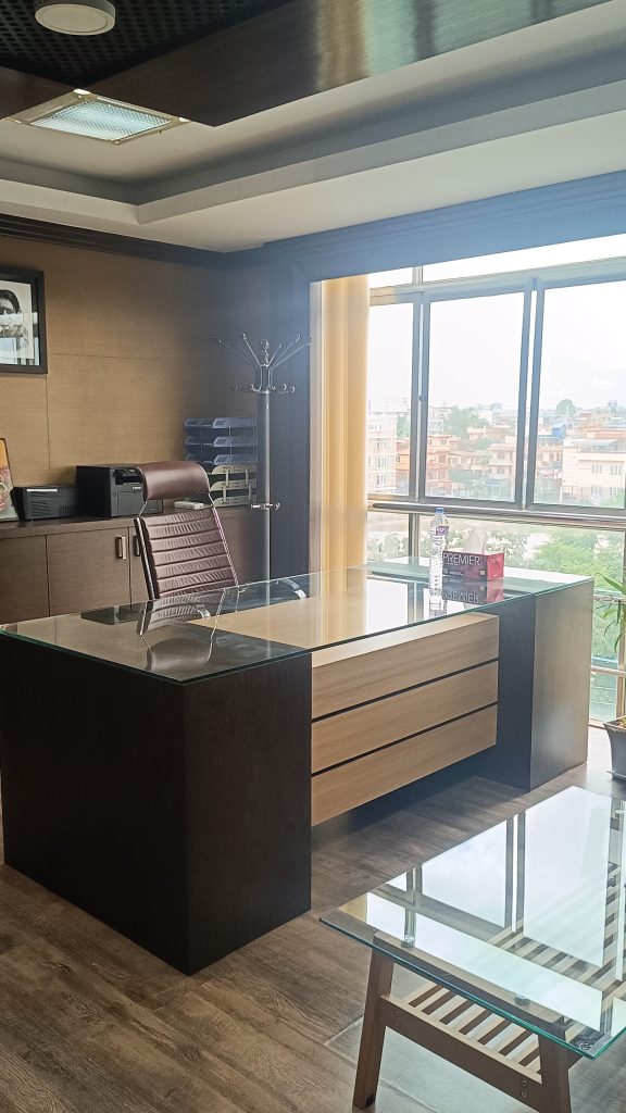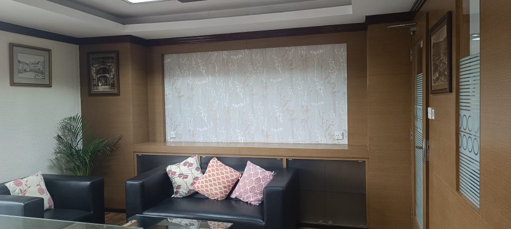In addition to the aesthetic changes, we consulted with Tiger Office to address the wear and tear on the existing elements. We recommended repairing the worn-out wall paints, furniture laminates, and blinds. Specifically, for the MD room, we introduced zebra blinds that offered flexibility in controlling light and provided various viewing options. The zebra blinds not only served a practical purpose but also added a touch of modern elegance to the room, capturing the client’s admiration.